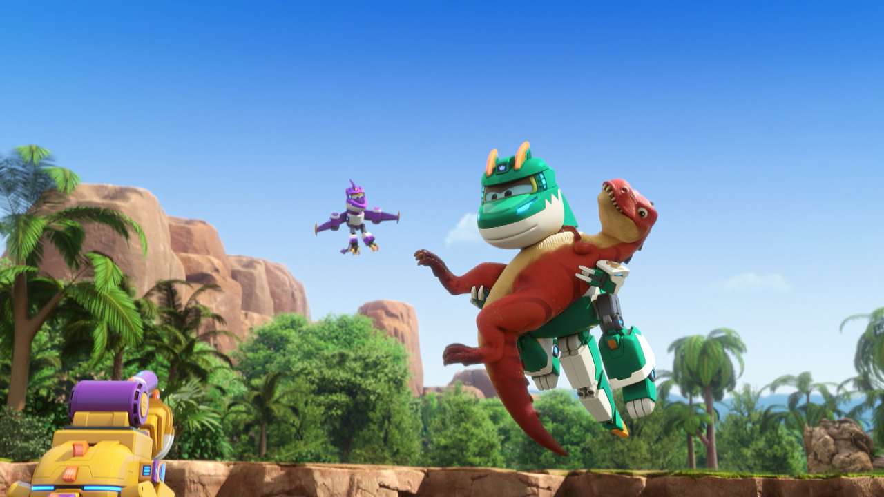 Там помогать динозаврам будет особая, похожая на динозавров, команда. Но отважной команде всё по плечу! Тем более, что у них появились необычные суперспособности: возможность превращаться в огромных роботов и комбинировать свои силы друг с другом. А с новыми друзьями-самолётами — Кьюри, Руни и Сарой — выполнение заданий стало ещё интереснее и веселее.